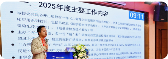 本次大会的成功举办,不仅全面展现了深圳市视光学会过去一年的工作成效与行业影响力,更通过深层次的学术探讨与务实的技术培训,为眼健康领域的创新发展注入了新动能。未来,深圳市视光学会将继续秉持 “服务会员、赋能行业、守护光明” 的核心宗旨,凝聚全体同仁的智慧与力量,在领导团队的带领下再接再厉,持续推动视光事业向更规范、更创新、更融合的高质量发展新阶段迈进,为全民视觉健康保驾护航。