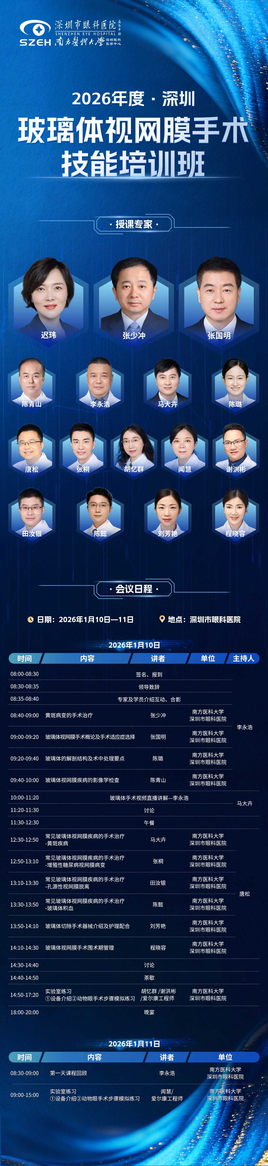 网站首页    学术园地    【技能培训】2026年深圳微创玻璃体手术技能培训班